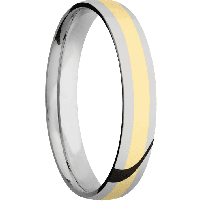 4mm wide Domed Titanium Ring with Polish Finish / One 2mm Centered 14k Yellow Gold Inlay with Polish Finish