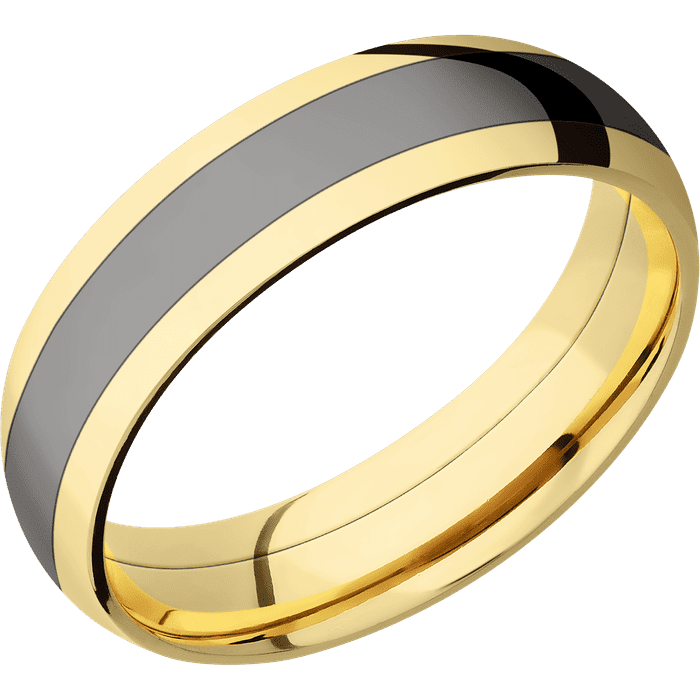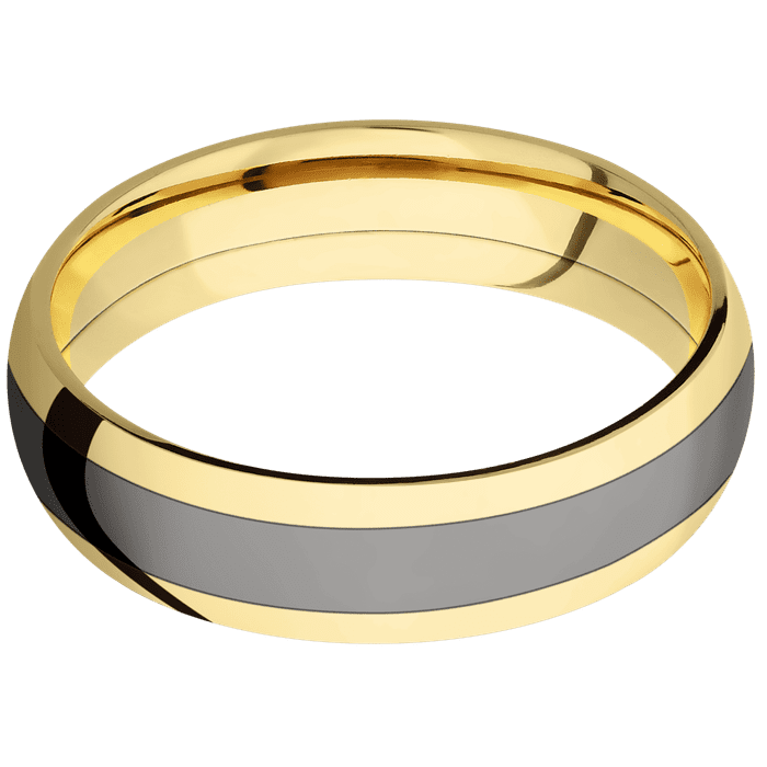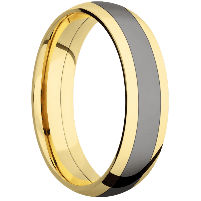 6mm wide Domed 10k Yellow Gold Ring with Polish Finish / One 3mm Centered Darkened Tantalum Inlay with Polish Finish