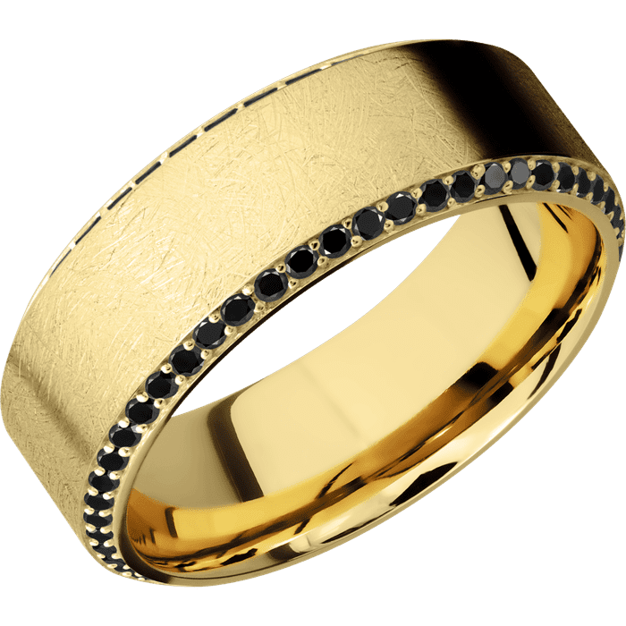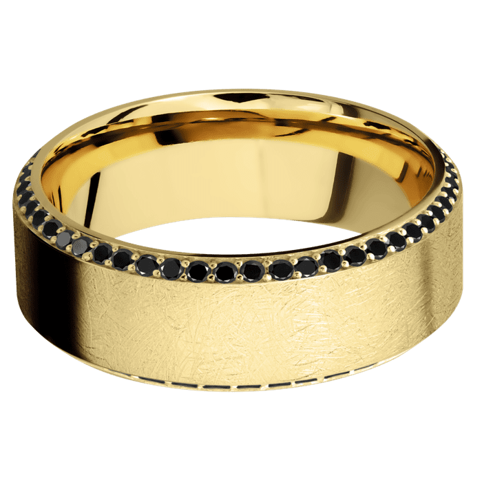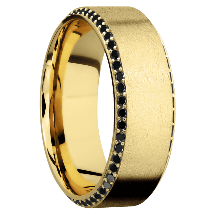 8mm wide High Bevel 10k Yellow Gold Ring with Distressed Finish / Bevel Eternity Round .01 carat Black Diamond Bead-Set Gemstones
