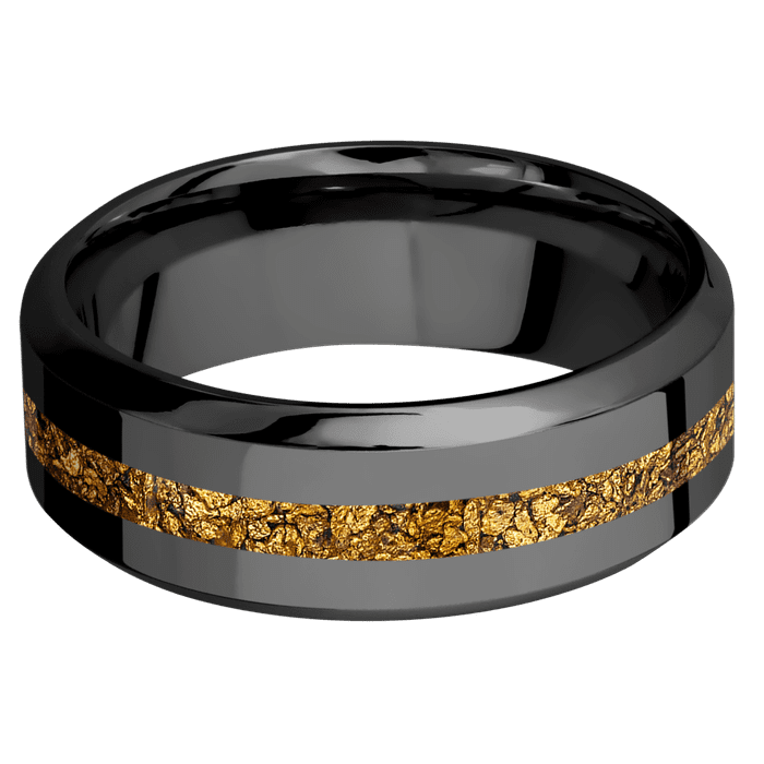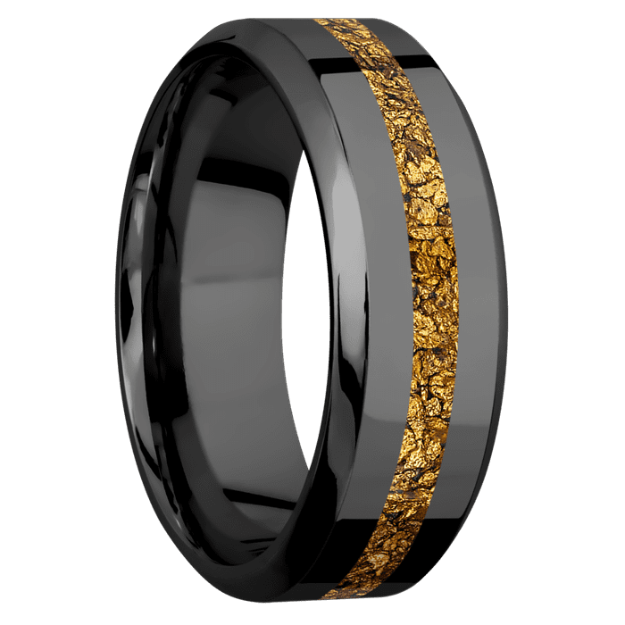 8mm wide High Bevel Black Titanium Ring with Polish Finish / One 2mm Centered 24k Raw Gold Nugget Inlay