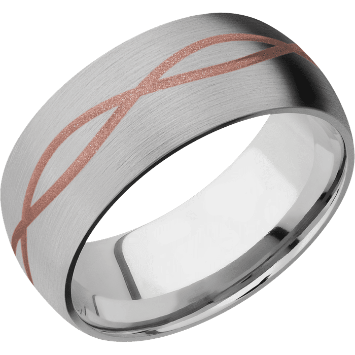 9mm wide Domed Titanium Ring with Satin Finish / Infinity Design and Rose Gold Cerakote Accents