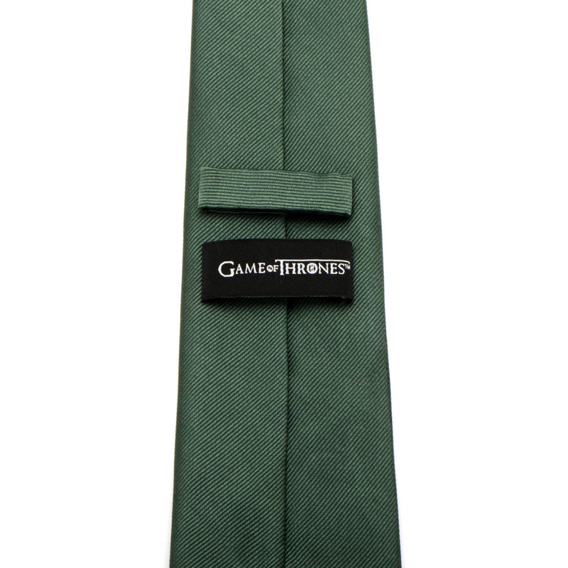 Be as bold as Eddard Stark in this elegant green tie with the direwolf sigil of House Stark emblazoned on the front. Made of 100% woven silk, this tie will have everyone longing for a direwolf companion of their own. Officially licensed from HBO's Game of Thrones.