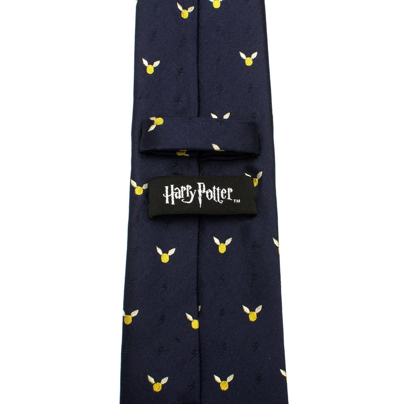 The Golden Snitch Dot Tie is made of 100% silk and weaves together the iconic silhouette of the golden snitch with a lightning bolt that blends into the navy background. The pattern lends itself to a classic menswear look while subtly showing your loyalty to the Harry Potter fandom.