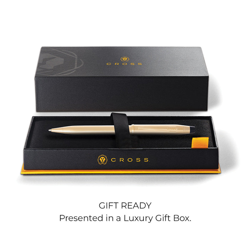 We’ve renewed an icon of Cross design and innovation for discerning writers and gift-seekers. The Century® II Ballpoint Pen has the same elegant, yet purposeful profile and performance that have been treasured for generations. But now, we’re introducing a new 23KT Gold Plated finish for those who want to make their mark in consummate style. Crafted using one of the highest purities of gold and plating standards to achieve the same rich and luxurious appearance as solid gold. A top gift choice, destined to become a lifetime companion on the journey of success.