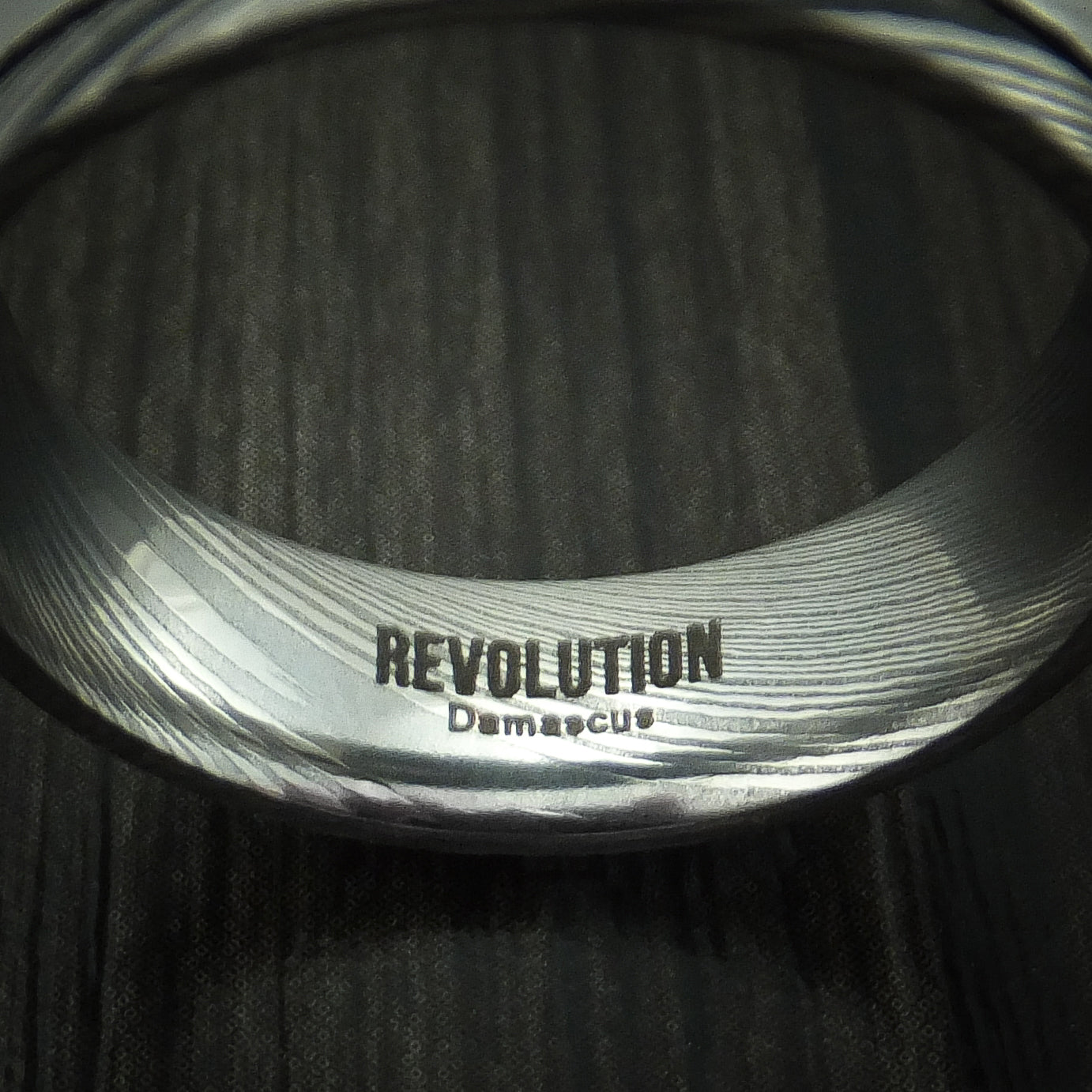 Here is an example of a Damascus steel ring with our Logo engraved: