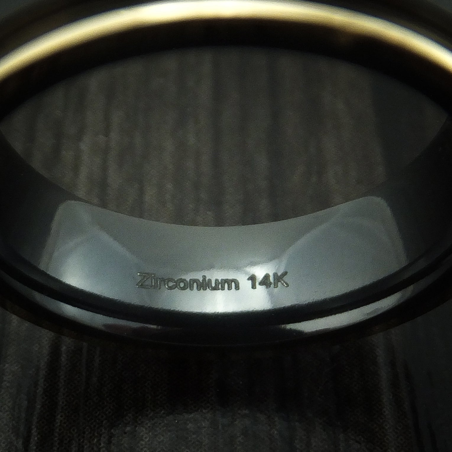 Here is an example of a black zirconium and 14k gold ring with the material mark: