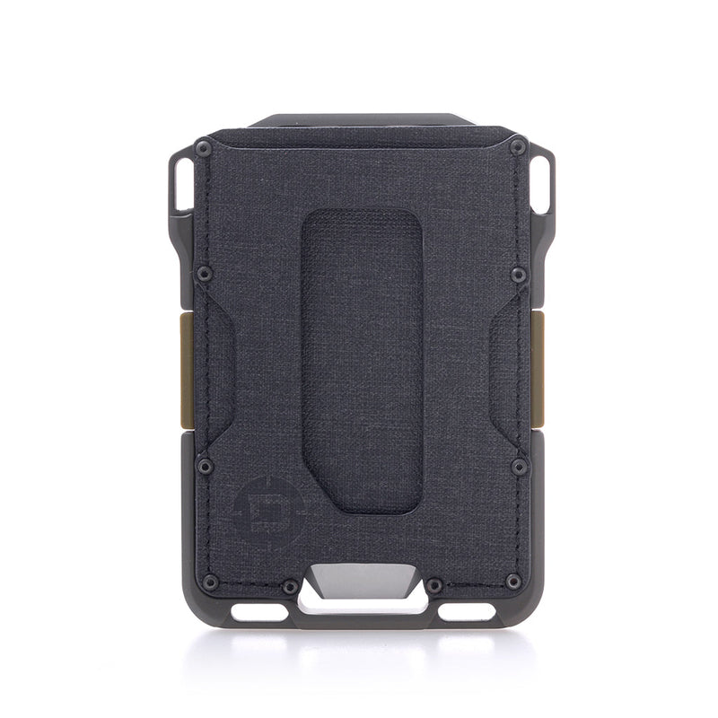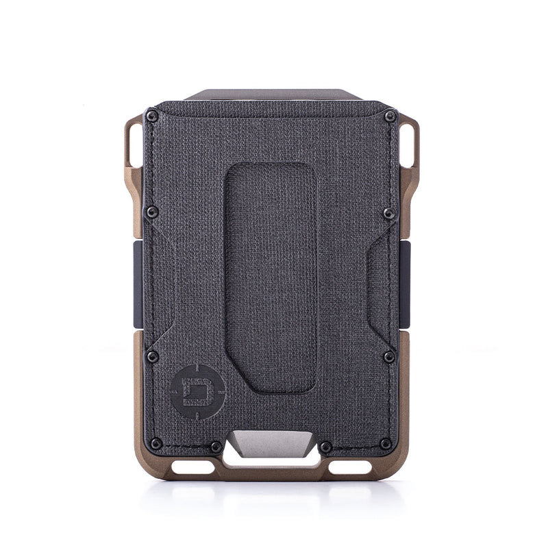 The M1 Spec-Ops combines CNC Machined 6061 aerospace aluminum with our very own developed DTEX material; a fine mixture of an industrial “bullet-proof” chassis with a wallet skin that is resilient, flexible and water resistant. The surface of the M1 chassis is ceramic coated with Cerakote - a firearms industry standard ceramic paint tough enough to withstand rough handling. The metal RFID blocking card cavity can hold up to 6 cards depending on card thicknesses.