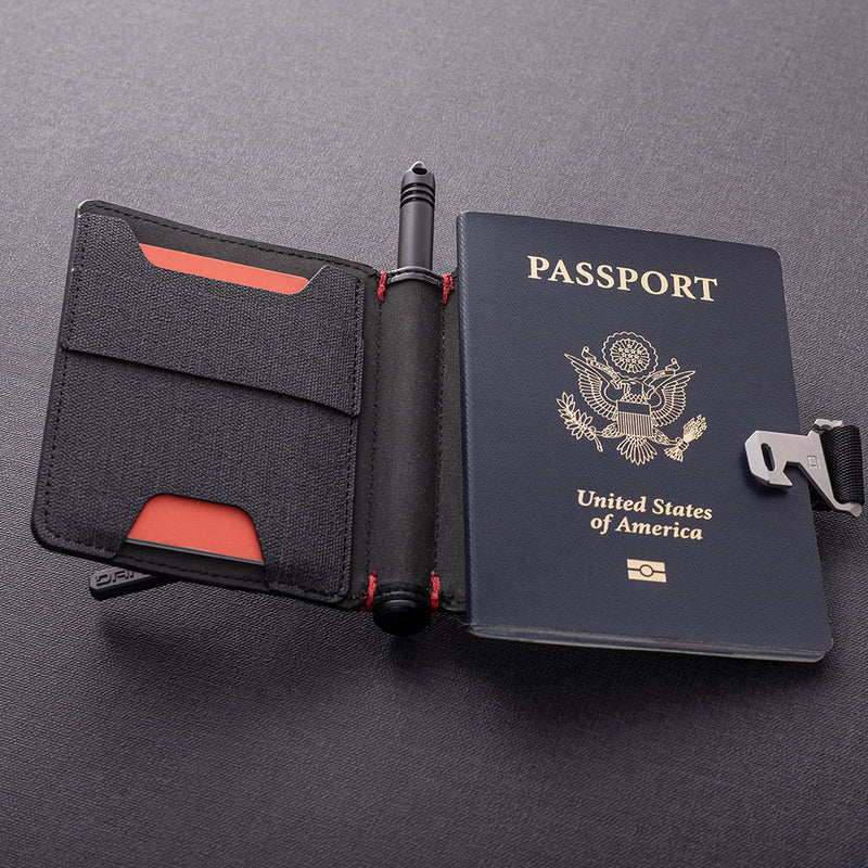 The P01 Pioneer™ Travel Wallet continues to traverse the landscape with its ability to carry and secure a wide range of everyday essentials. A built-in pen pocket and notebook pocket keeps your everyday writing tools compact and ready to deploy. Included with every P01 is the stainless steel MT01 Clasp Multi-Tool with a mini bottle opener, drivers, a chisel point and a hex tool. Designed onto the face of the wallet is a zipper pouch to store your loose bits, like coins, memory cards, jewelry, guitar pics, etc. Also built into the wallet is a flip out D-ring to tether and attach keys, paracords, lanyards, chains etc.