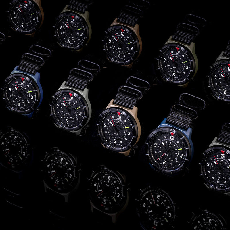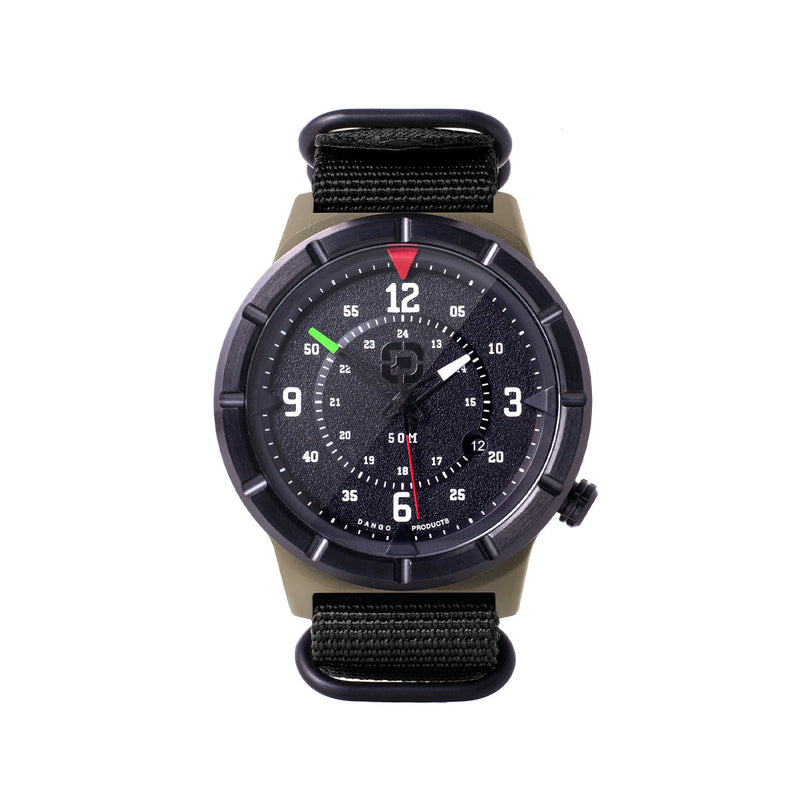 Inspired by military, first responders, preppers and outdoor enthusiasts, the Spec-Ops edition Dango Watches have a presence that embodies the rugged and tactical lifestyle. The tactical persona has always been one of the core lifestyles that we cater to here at Dango, because we believe that being cunning is the number one characteristic of surviving. The watch face design emulates a compass - an iconic object that symbolizes savviness. With a classic 2 hands style face, Dango Spec-Ops watches are made with Japanese Miyota 2315 movement and equipped with domed mineral crystal glass and a nylon strap for a premium look and feel with precision time-telling. In addition, the surface of the watch head is is ceramic coated with Cerakote - a firearms industry standard ceramic paint tough enough to withstand rough handling. Being 50M water resistance with luminescent hands and dials make these watches the perfect time telling companion for the everyday survivalist.