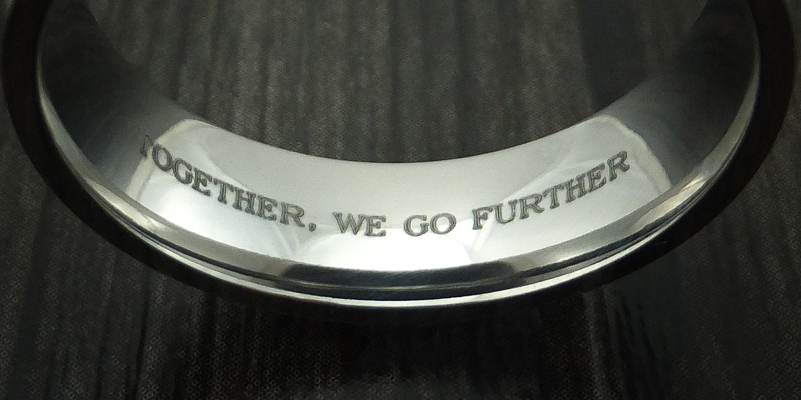Here is an example of a Damascus steel ring with our Logo engraved: